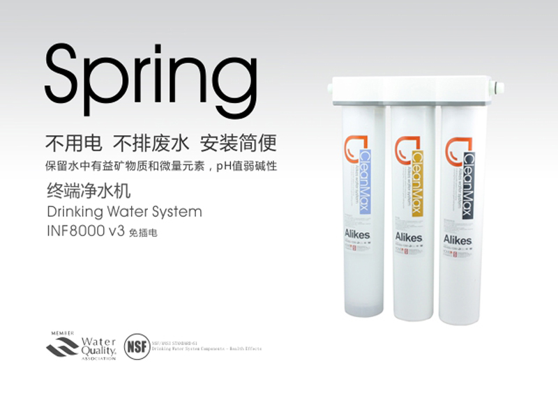 Alikes終端凈水機(jī)利用市政管道自來水的壓力驅(qū)動水流,通過獨特的濾芯來達(dá)到生飲的標(biāo)準(zhǔn)。安裝簡易,即插即飲。去除水中的泥沙、******、鐵銹、懸浮物、有害重金屬、余氯異色和異味。不需用電,不產(chǎn)生廢水,即用即飲,不需儲水罐避免二次污染 , 確保飲水健康。是凈水機(jī)中的高端產(chǎn)品,適用于咖啡店,水吧商用,別墅、******商務(wù)樓、******住宅樓家用。滿足高端人群對高品質(zhì)飲水的需求 。